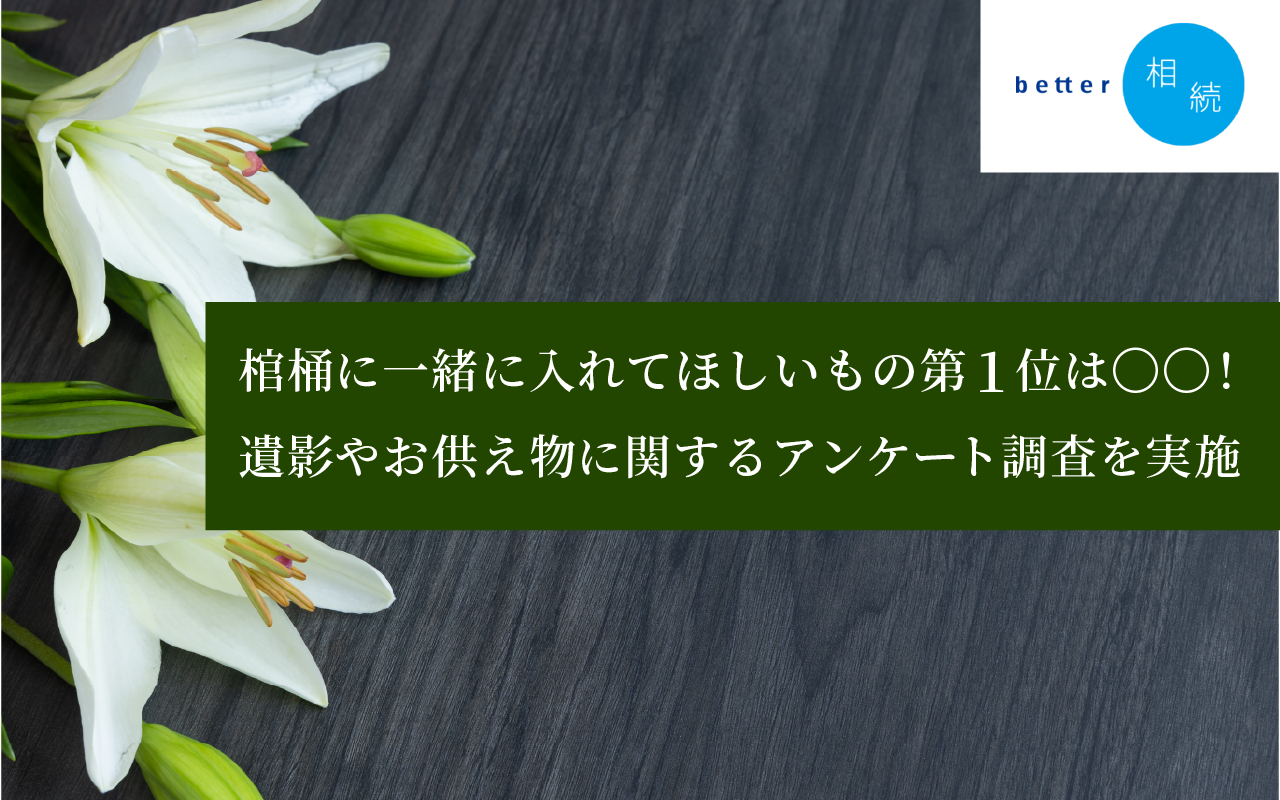 棺桶に一緒に入れてほしいもの第1位は〇〇!遺影やお供え物に関するアンケートに関する調査を実施【better相続】 2025/05/16 ニュース 終活が一般的となった現在、自身の死後について考えている方がどれくらいいるのか、具体的に何を考えているのか明らかにするためにアンケート調査を実施しました。 調査の結果は以下のリンクからご確認いただけます。ぜひご覧ください。 プレスリリースはこちら 一覧へ戻る