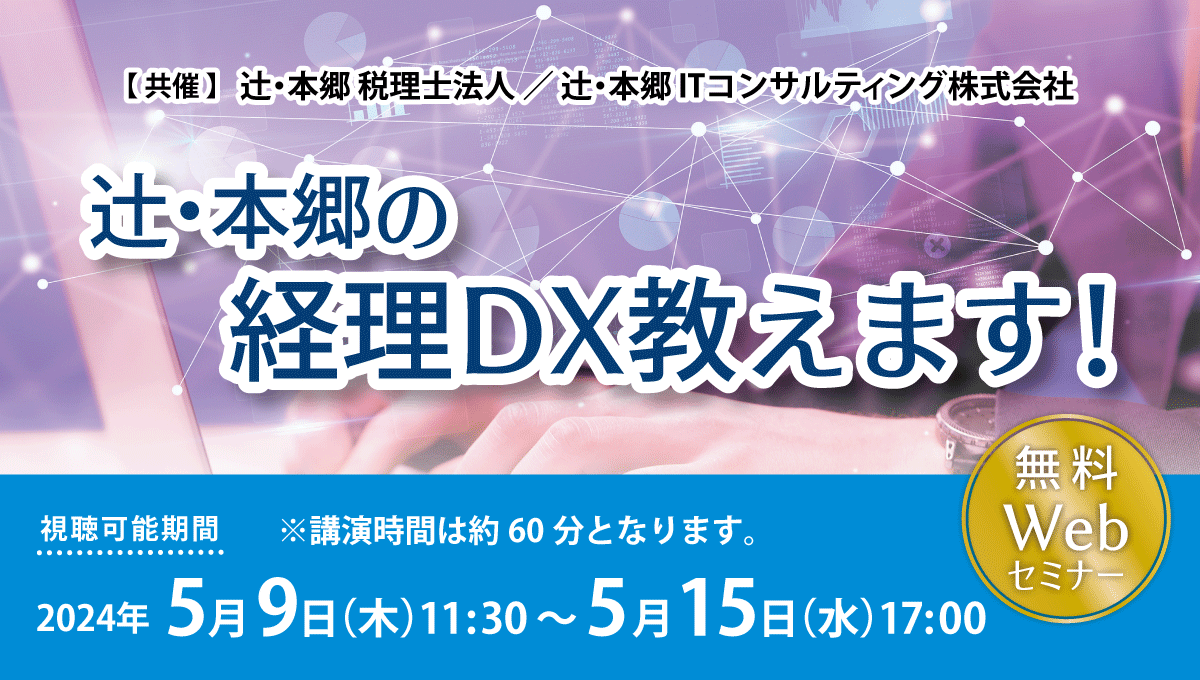 本セミナーでは辻・本郷のノウハウを活用し、人材不足の対応策となる決算業務の早期化や日々の経理業務の効率化についてお話します。