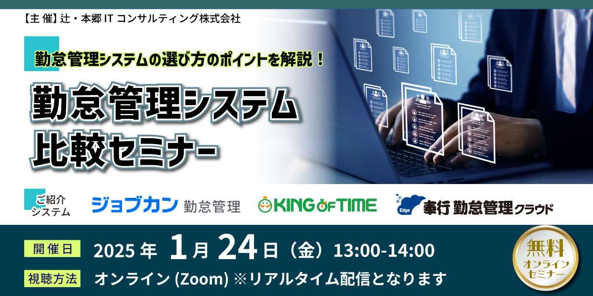 【無料セミナーのご案内】「勤怠管理システムの選び方のポイントを解説!勤怠管理システム比較セミナー